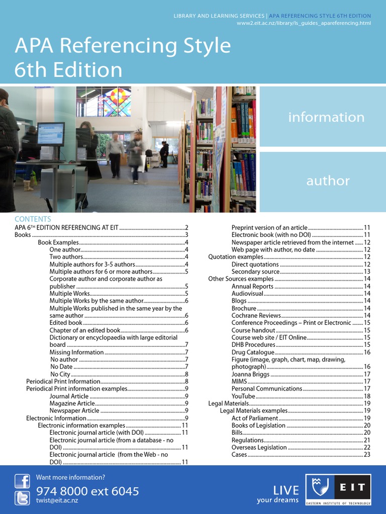 It is based on the sixth edition of the publication manual of the american psychological association (apa publication manual). This is the wintec guide to help you with referencing in the american psychological association (apa) style. Laupus health sciences library this handout provides an overview of the american psychological association's style of citation and writing. A 7th edition has since been produced. The 6th and latest edition was published in 2010. The apa reference generator below will automatically create and format your citations in the apa referencing style. 2 apa style of referencing according to the 6 th edition of the apa publication manual please note that although the first printing of the sixth edition of the publication manual of the american psychological association (apa) contained formatting errors in the sample paper, this document. Changes to the 5th edition are highlighted with the word (new). Number or type of authors one author two authors three to five authors. The apa 6th edition format is a resource that presents changes made in the 5th edition. However, most science disciplines do not require page or paragraph numbers except for direct quotations. Apa reference page (6th edition). The apa reference page is a separate page at the end of your paper where all sources you cited in the main text are listed.